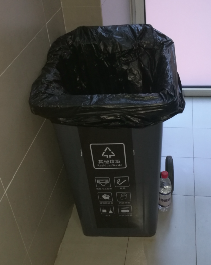 5. 其他垃圾桶:每间卫生间摆放1个大垃圾桶,在以前垃圾桶的位置。每层电梯口摆放1个不锈钢垃圾桶,仅限丢弃小个物件。