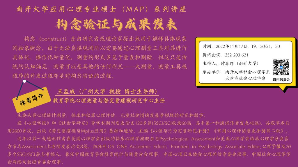 王孟成:构念验证与成果发表