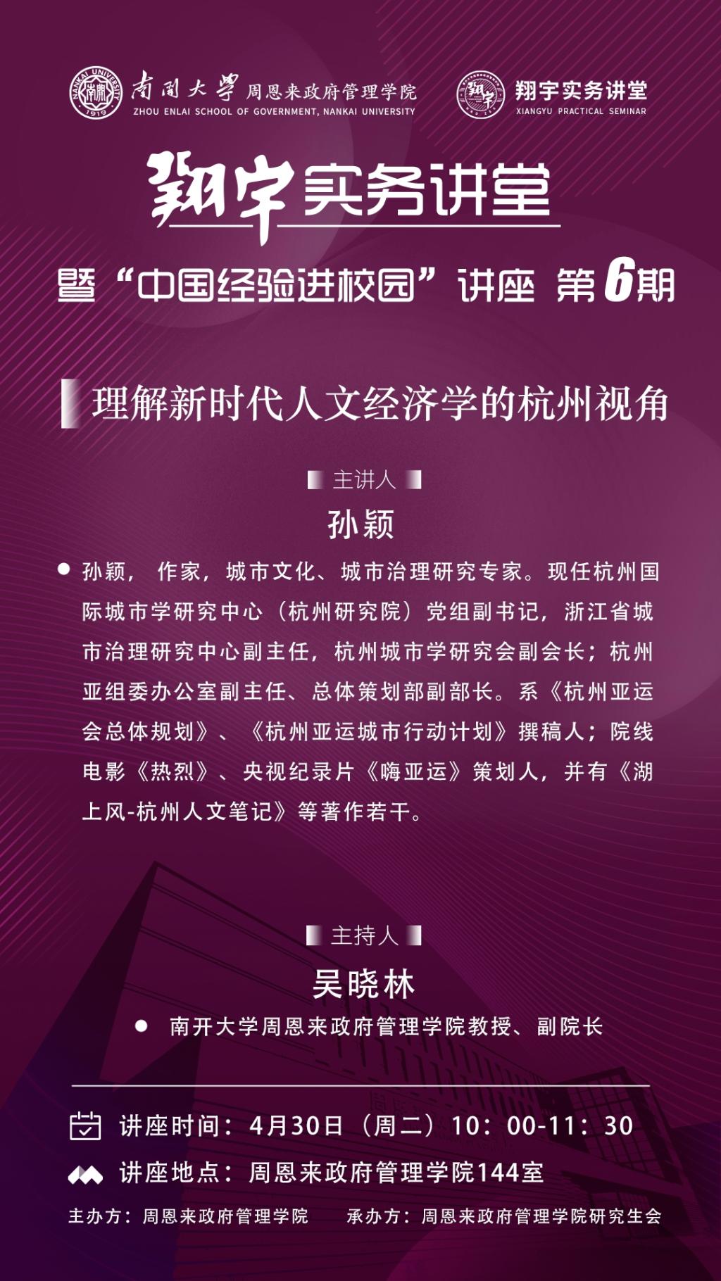 建院二十周年系列讲座 | 南开“翔宇”实务讲堂第6期:理解新时代人文经济学的杭州视角