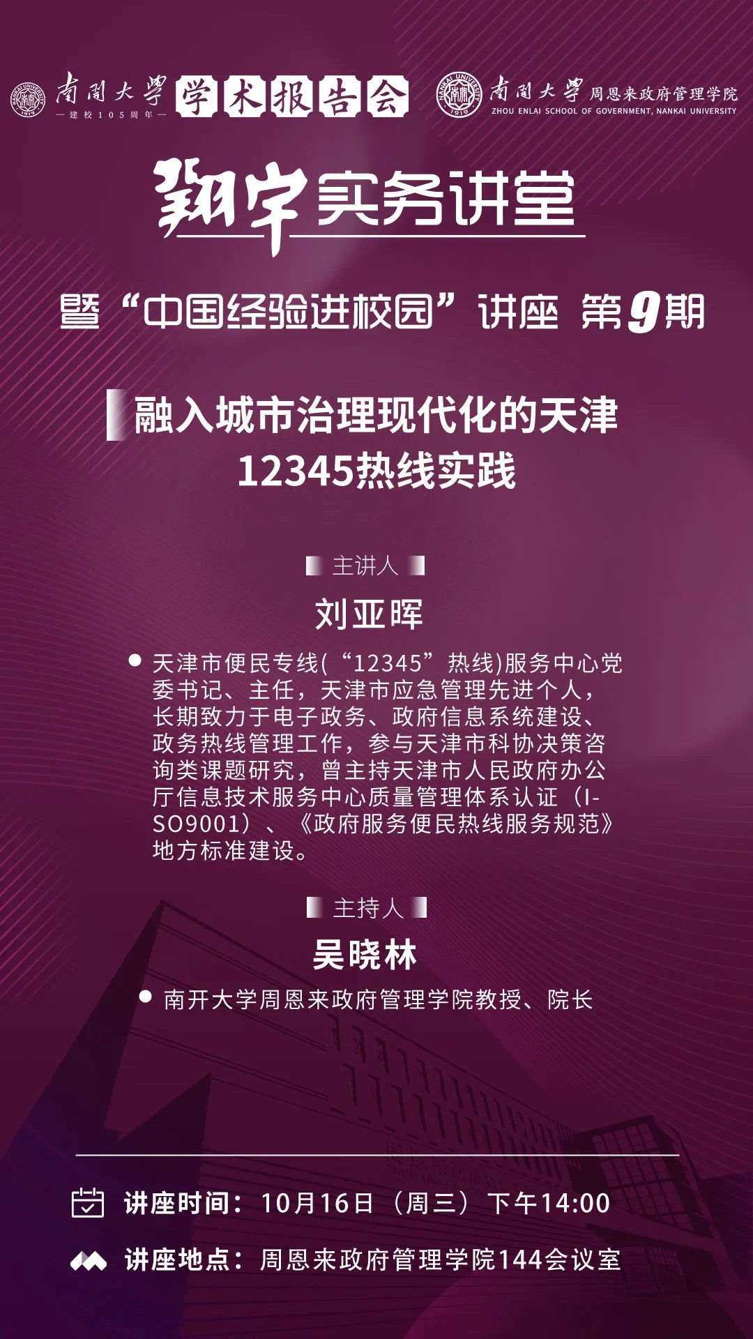 美国A片 建校105周年学术报告会暨“翔宇”实务讲堂|刘亚晖:融入城市治理现代化的天津12345热线实践